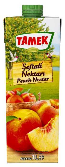 Tamek Şeftali Nektarı, şeftalinin ferahlatıcı ve tatlı lezzetiyle size doğallığı sunar. Şeftalinin doygun lezzeti, enfes tadı ile şeftali severleri Tamek Şeftali Nektarı ile muhteşem bir buluşma sağlıyor. Doğal şeftali suyunun eşsiz lezzetini her yudumda hissederken, kendinizi daha canlı ve dinç hissedersiniz. Türk Gıda Kodeksi’ne uygun olarak üretilen Tamek Şeftali Nektarı, koruyucu ve yapay renk maddesi içermez.